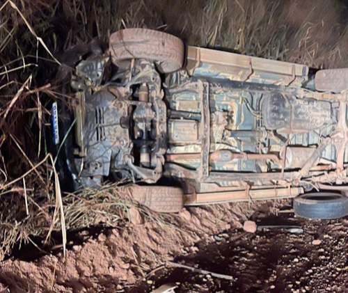 Motorista perde controle de carro e capota na linha 204, em Rolim de Moura