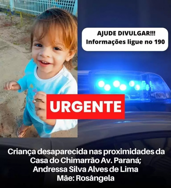 URGENTE: Menina que estava desaparecida em Vilhena é encontrada e já está com a família