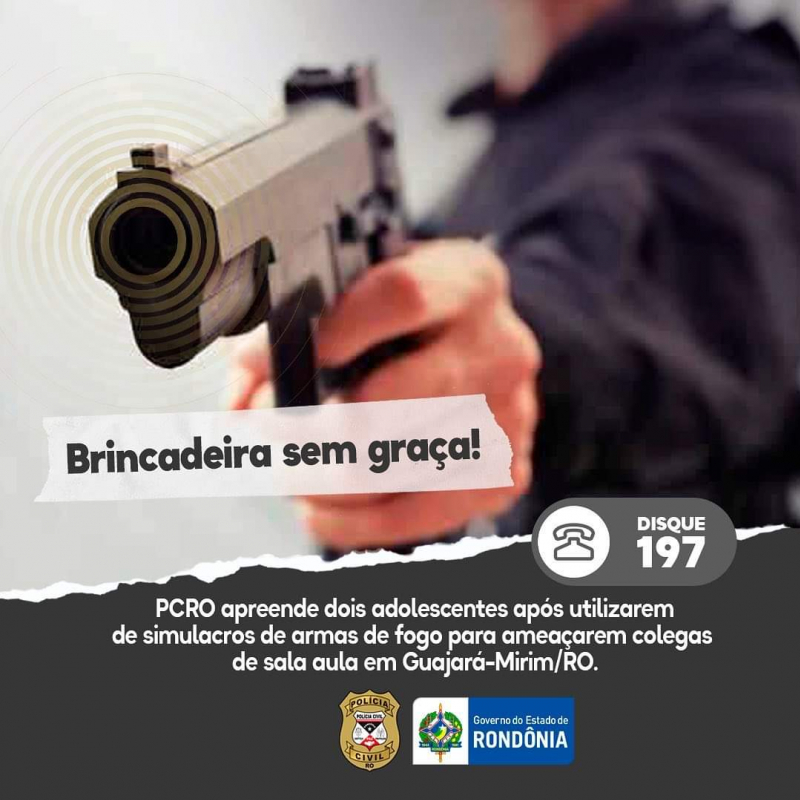 PCRO apreende dois adolescentes após utilizarem de simulacros de armas de fogo para ameaçarem colegas de sala aula em Guajará-Mirim/RO