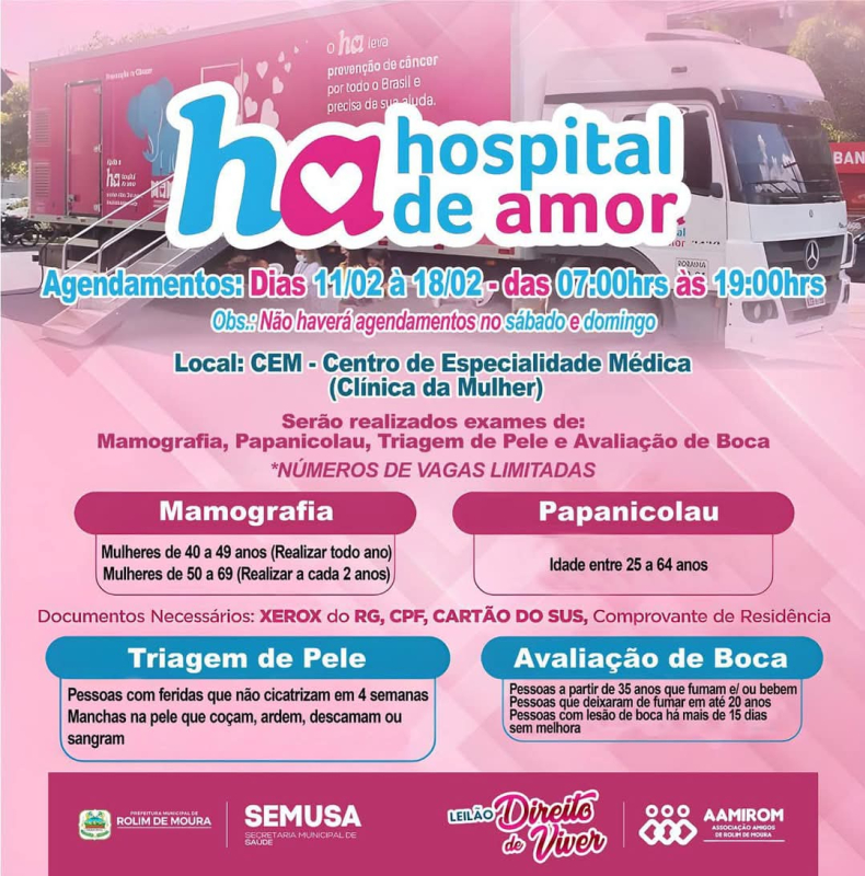 Carreta do Hospital do Amor estará em Rolim de Moura no final de março e início de abril