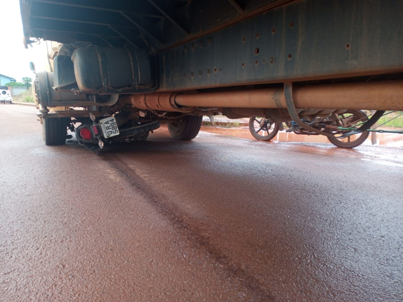 | 10/01/2025 Rolim de Moura- Motociclista escapa da morte após caminhão passar por cima da moto e arrastar por mais 10 metro |