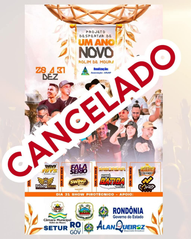 | 26/12/2024 CANCELADA: Festa de réveillon de Rolim de Moura tem programação suspensa por questões contratuais |